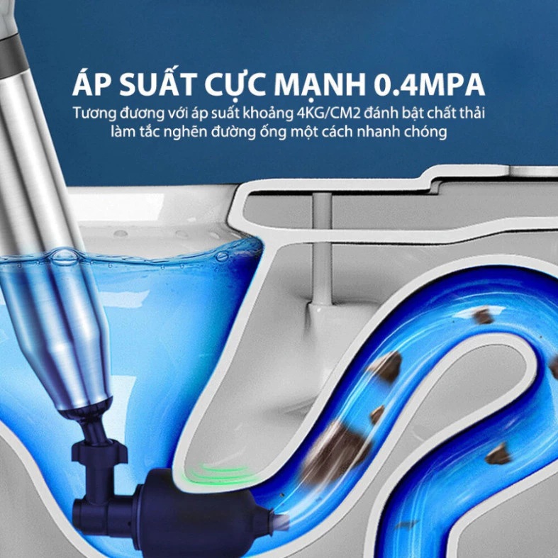 Súng thông tắc bồn cầu kèm bơm khí nén 4 in 1 là dụng cụ thông tắc đa năng cho gia đình, giúp xử lý mọi vấn đề tắc nghẽn chỉ trong vài giây mà không cần gọi thợ, không phải dùng hóa chất độc hại. Sản phẩm sử dụng áp lực khí nén lớn, tạo lực đẩy cực mạnh, giúp đẩy bay các vật cản như: giấy, tóc, thức ăn, dầu mỡ, rác thải… trong đường ống.